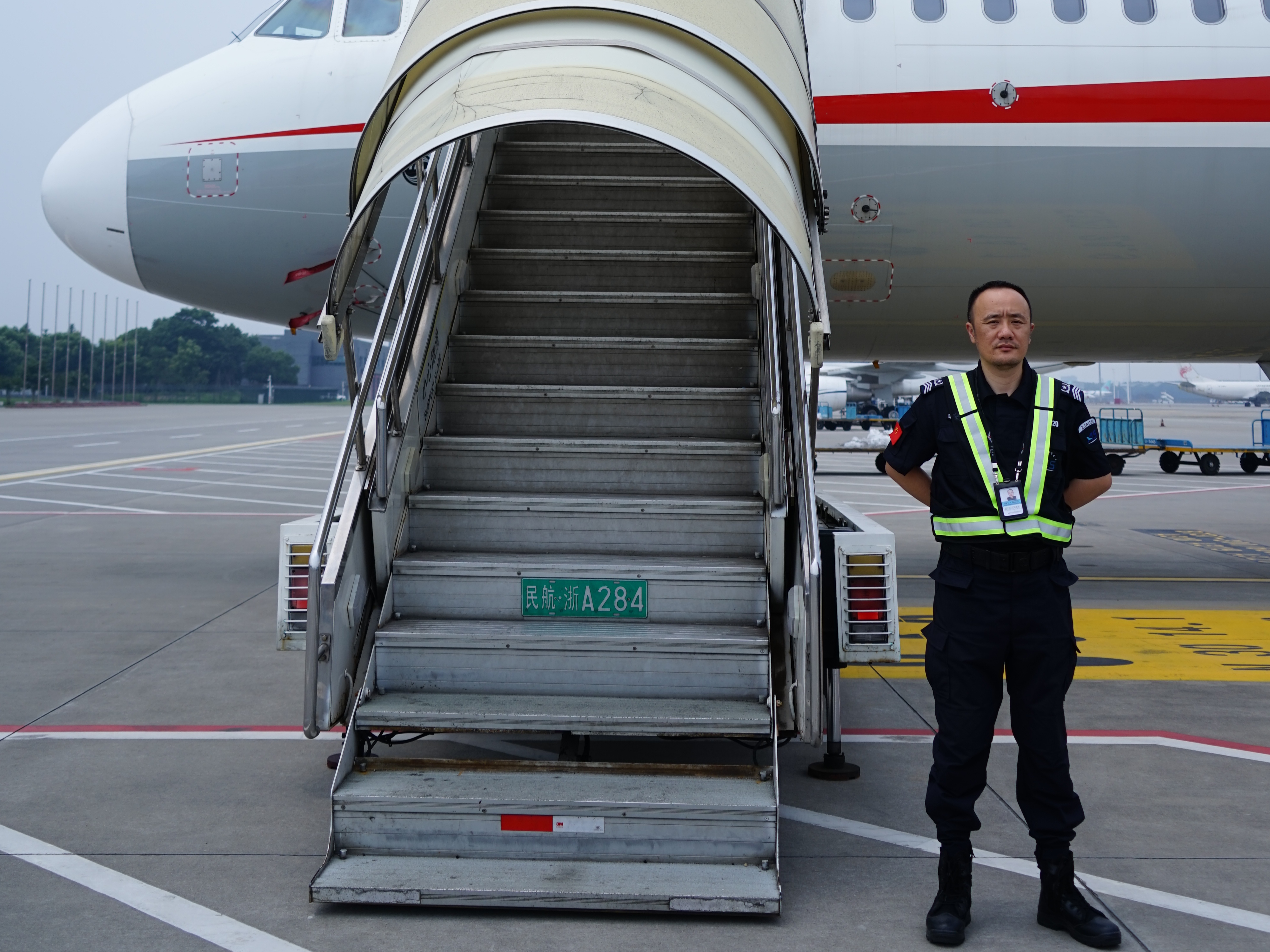 在浙江空港,有這樣一群特殊的民航衛(wèi)士。他們曾是戍邊衛(wèi)士、巡海精兵、空軍戰(zhàn)將,如今是空港續(xù)寫榮光的民航人,用忠誠、紀(jì)律、過硬作風(fēng)詮釋“退役不褪色、轉(zhuǎn)業(yè)不轉(zhuǎn)志”的誓言。在保安公司的員工隊伍中,就有110多位退伍軍人,他們經(jīng)歷了從“迷彩綠”到“空港藍(lán)”的轉(zhuǎn)變,遍布全省機場,在航站樓值守、飛機監(jiān)看護(hù)、橋載裝卸等30余種安保崗位上履職盡責(zé)、默默奉獻(xiàn),護(hù)航機場安全平穩(wěn)運行。