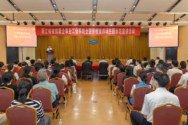 為深入學(xué)習(xí)貫徹習(xí)近平總書(shū)記在慶祝中華全國(guó)總工會(huì)成立100周年暨全國(guó)勞動(dòng)模范和先進(jìn)工作者表彰大會(huì)上的重要講話精神,持續(xù)講好勞模故事、勞動(dòng)故事、工匠故事,8月21日,浙江省省部屬企事業(yè)工會(huì)系統(tǒng)全國(guó)勞模第四場(chǎng)主題示范宣講活動(dòng)在浙江省機(jī)場(chǎng)集團(tuán)有限公司舉行。本場(chǎng)活動(dòng)由浙江省省部屬企事業(yè)工會(huì)主辦,浙江省機(jī)場(chǎng)集團(tuán)有限公司工會(huì)承辦。