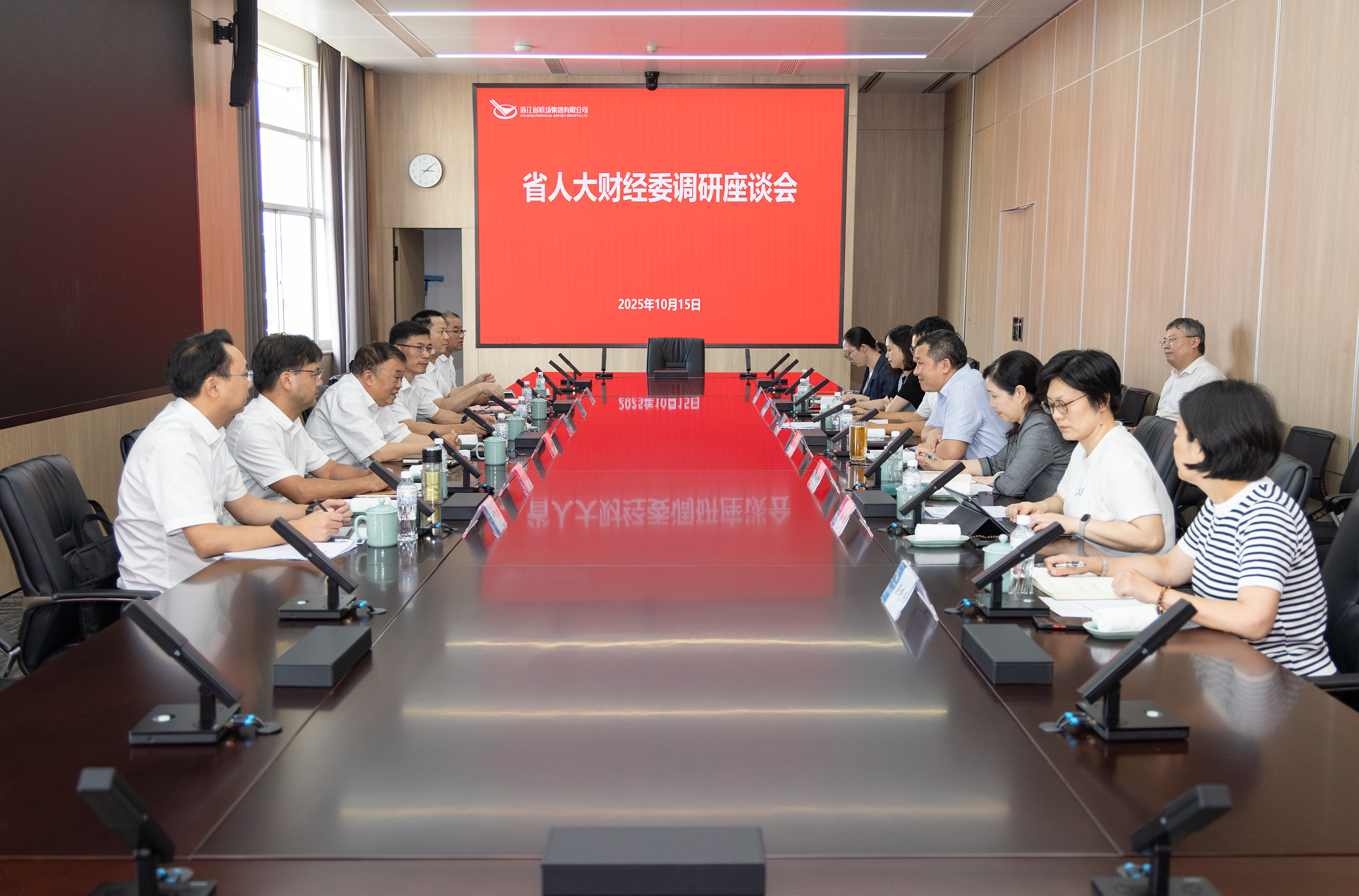 10月15日,省人大常委會(huì)委員、財(cái)經(jīng)委副主任委員周日星帶隊(duì)赴省機(jī)場(chǎng)集團(tuán)調(diào)研,了解集團(tuán)落實(shí)省人大常委會(huì)《關(guān)于省屬國(guó)有企業(yè)產(chǎn)業(yè)結(jié)構(gòu)優(yōu)化調(diào)整情況報(bào)告的決議》及集團(tuán)產(chǎn)業(yè)發(fā)展情況,聽(tīng)取意見(jiàn)建議。省人大常委會(huì)預(yù)算工委副主任、一級(jí)巡視員莫紅民,省國(guó)資委黨委委員、副主任董正泉等陪同調(diào)研。集團(tuán)黨委書記、董事長(zhǎng)魏建根,集團(tuán)黨委委員、副總經(jīng)理葛建娟及相關(guān)部門負(fù)責(zé)人參加座談。